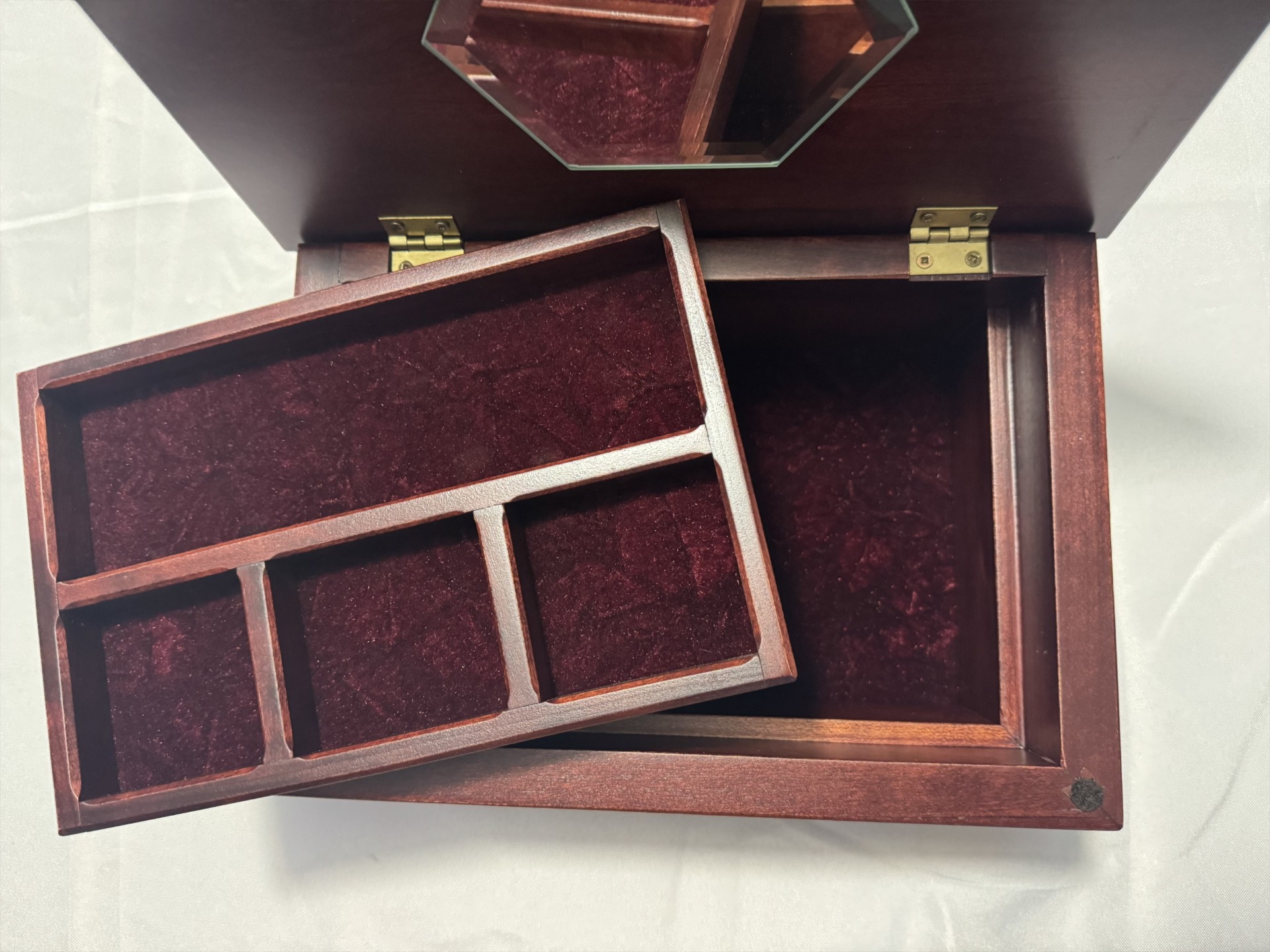 Inside, a felt-lined compartment keeps your rings, bracelets, and heirlooms beautifully organized. Built to last for generations, this piece combines classic design with artisan craftsmanship — a perfect blend of beauty and durability.