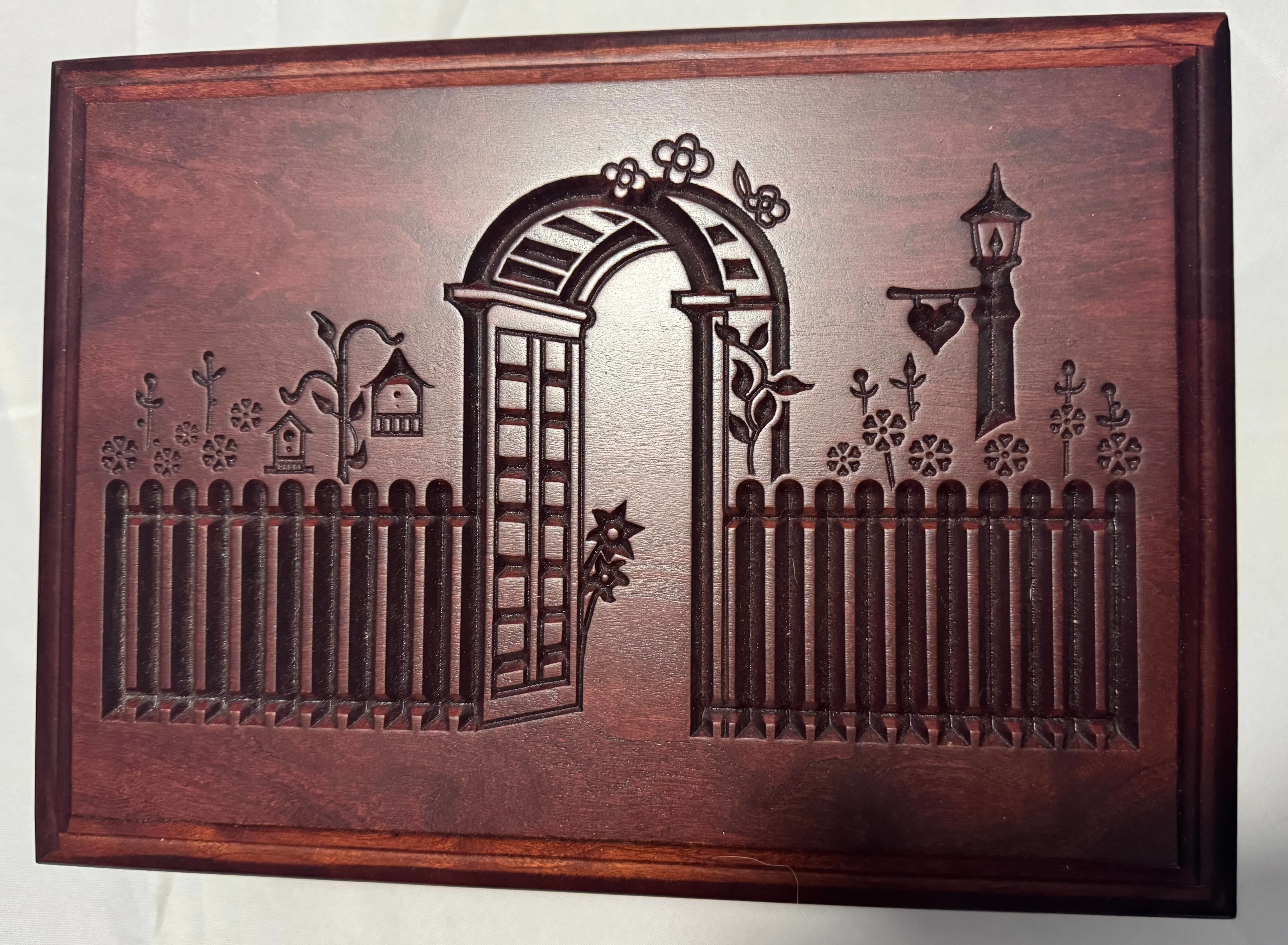 In stock - Graceful and timeless, our Jewelry Box with Garden Arch Design is handcrafted by Amish artisans from solid cherry hardwood. The detaiuled top evokes a garden-inspired elegance, while precision joinery and a carefully applied finish showcase the natural warmth and fine grain of genuine cherry wood.