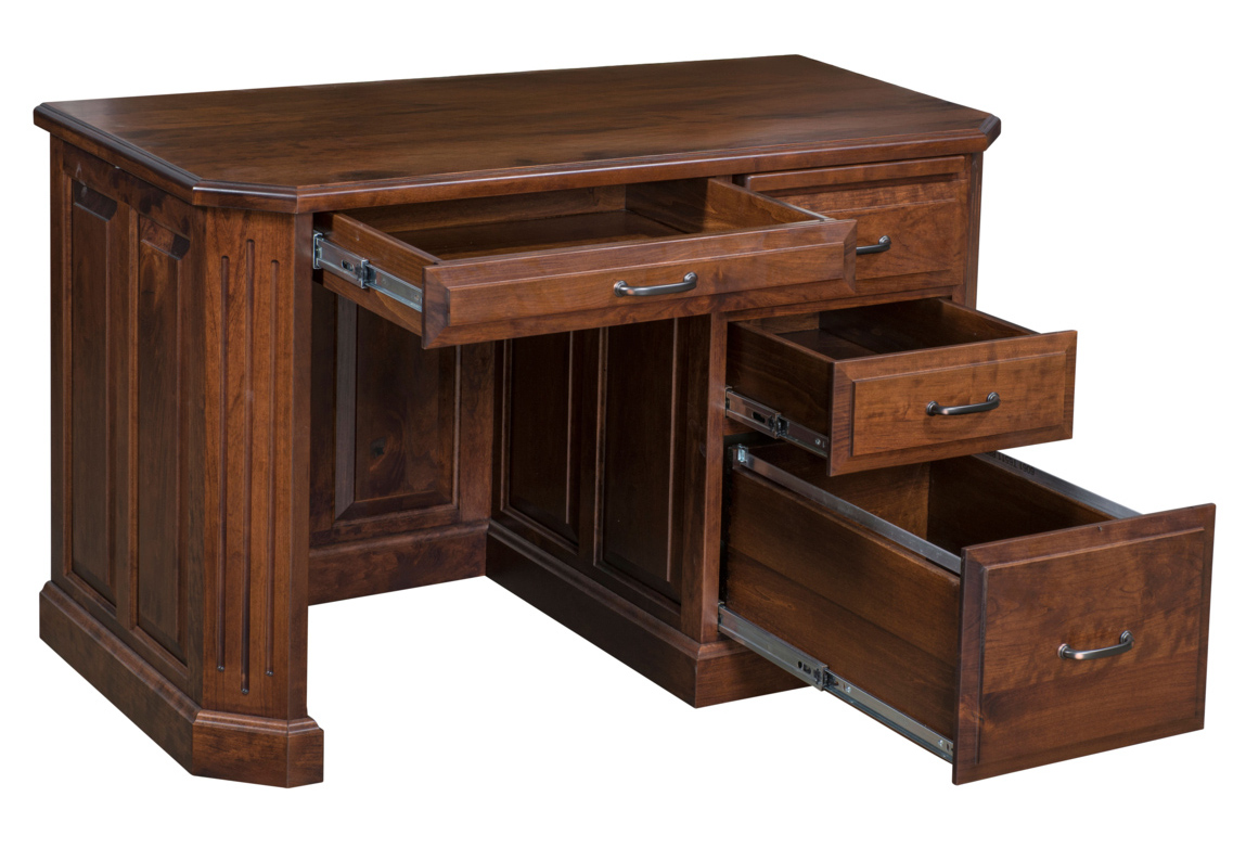 The Petite Fifth Avenue Desk embodies simplicity and elegance, this small Amish handcrafted desk is a gem of traditional woodworking. Made entirely from solid wood by the skilled hands of Amish artisans, every inch of this compact desk showcases meticulous attention to detail, reflecting generations of craftsmanship expertise. Despite its modest size, this solid wood desk is both a functional workspace and a timeless piece of art. Ideal for limited spaces. This desk offers the lasting quality of Amish craftsmanship in a footprint that fits seamlessly into any room. Made in the USA.